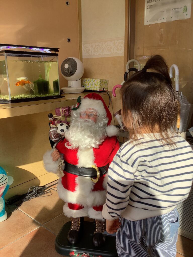 玄関前には音楽を奏でているサンタさんがいますよ🎅